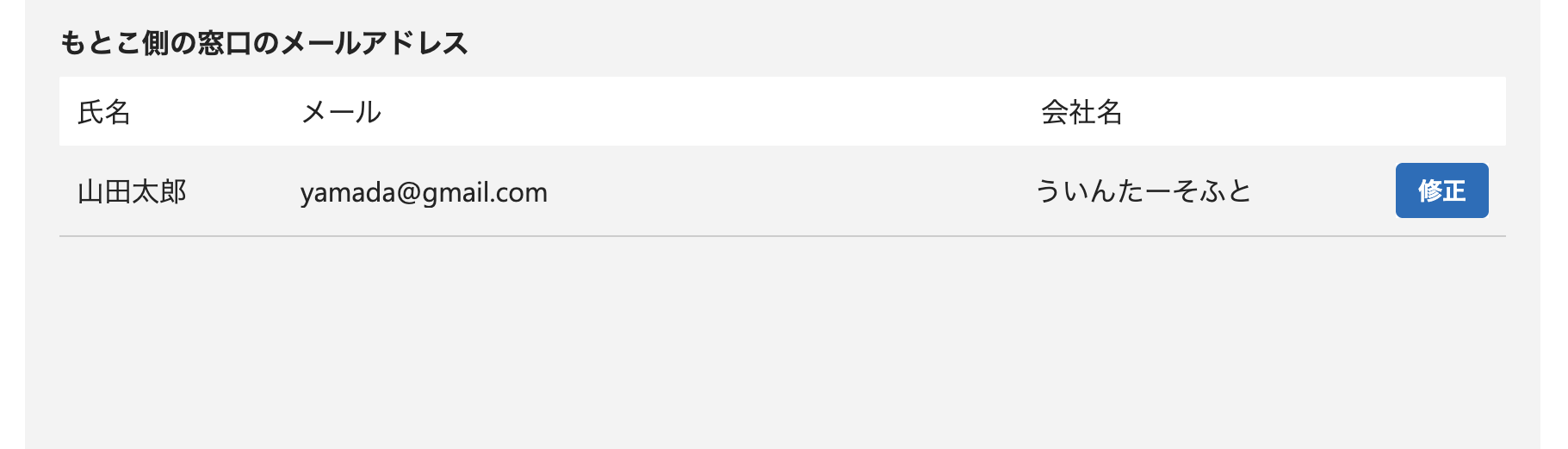 もとこ側の窓口のメールアドレス