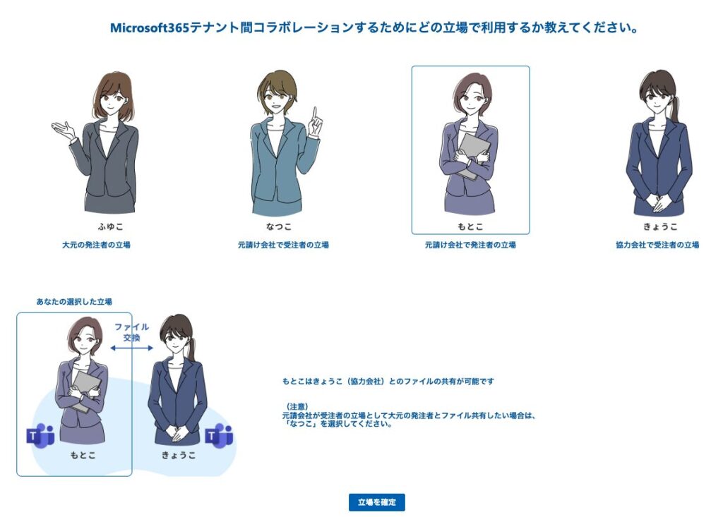 - 選択した立場の説明と、「立場を確定」のボタンが表示されます