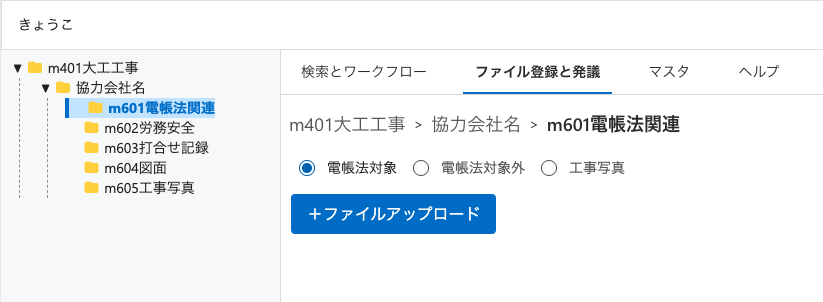 1.メニューから電帳法対象・電帳法対象外・工事写真を選択