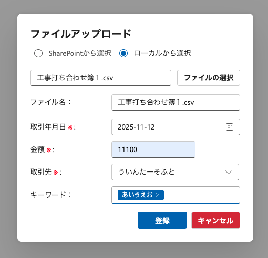 4.ファイルアップロードボタンをクリック