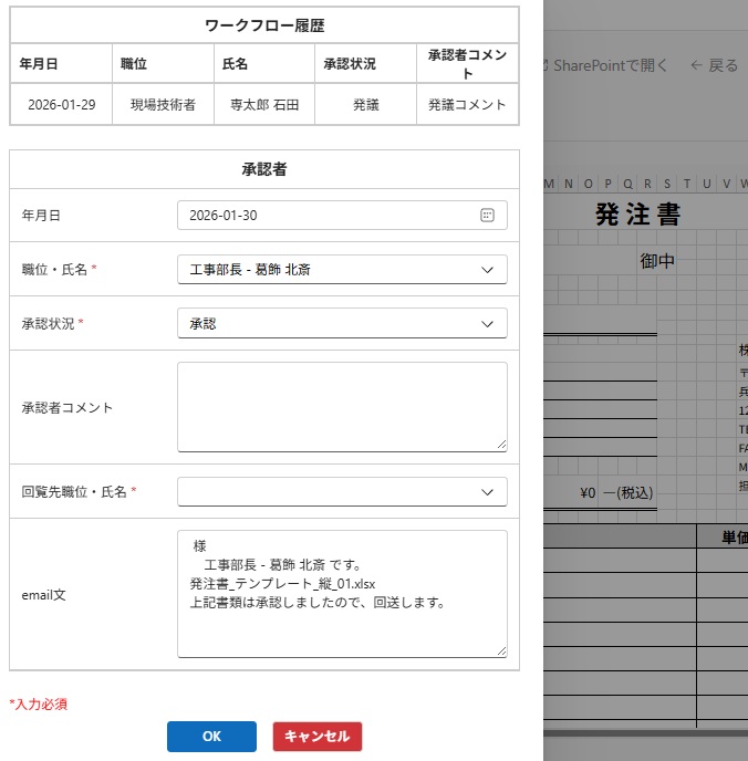 - 職位・氏名と回覧先職位・氏名ドロップボックスには、職位・氏名マスタが表示されます。