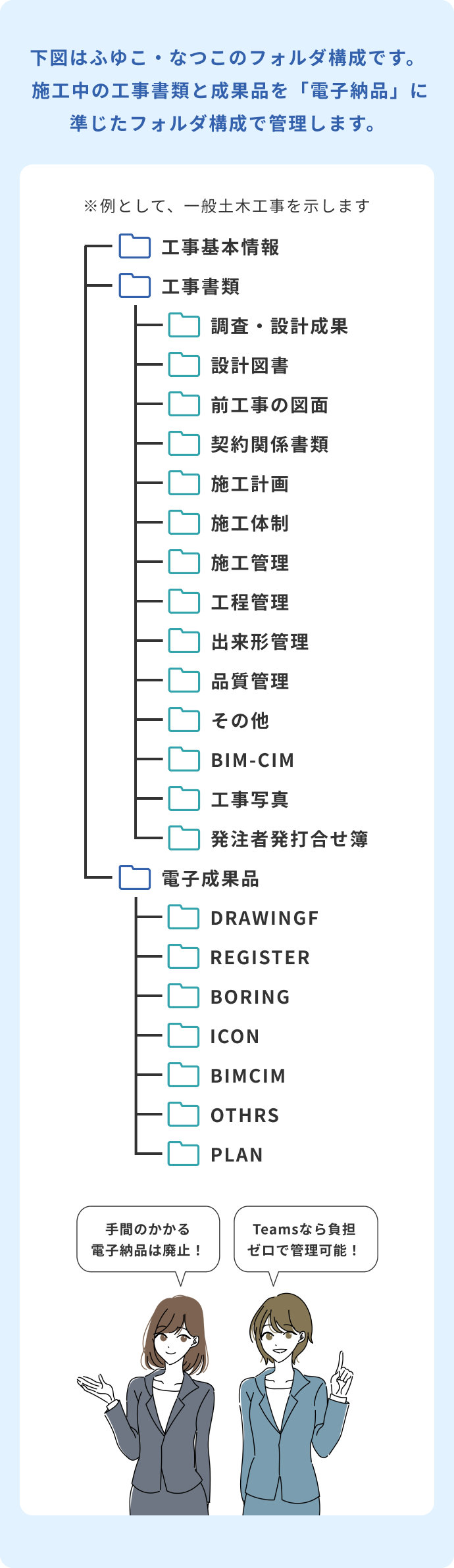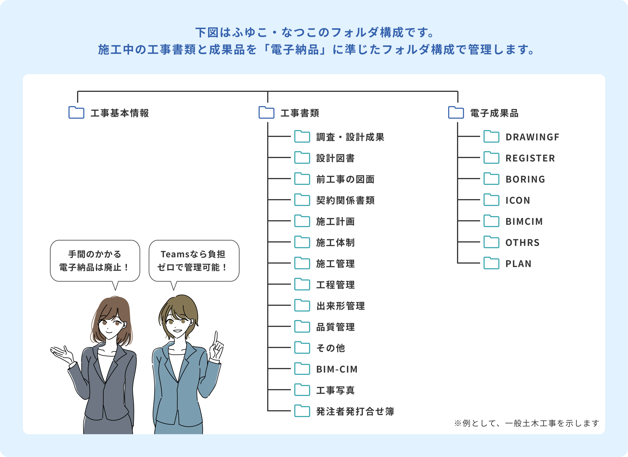 Teamsが持つ優れたファイル管理機能とコラボレーション機能は、発注者・請負者間の工事情報共有に最適です。