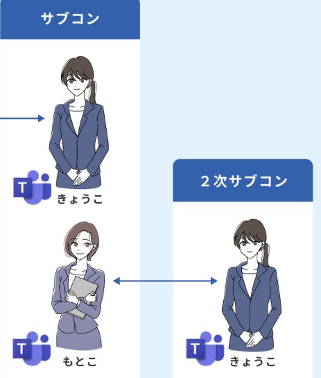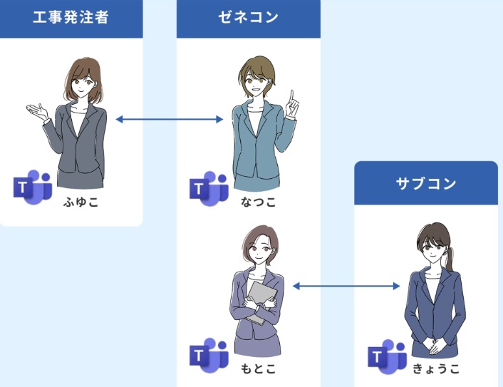 - 「チーム名」は発注者側・請負者側が異なっていても、「ふゆこ・なつこ間」、「もとこ・きょうこ間」で問題なく連携できますが、同一名にしておく方が何かと便利です。