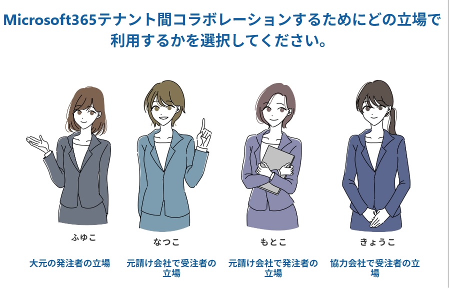 - SharePointが初期化完了され且つ、管理者承認が完了している場合、「4.Microsoft365テナント間コラボレーションするために、どの立場で利用するかを選定してください」が表示されます。